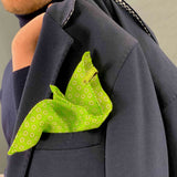 Fazzoletto da taschino in 100% lana stampata, made in Italy. Orlo francese con filo a contrasto verde